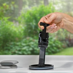 Met de draadloze afstandbediening kunt u de spafuncties van overal in de spa en vanaf 9 meter afstand bedienen.